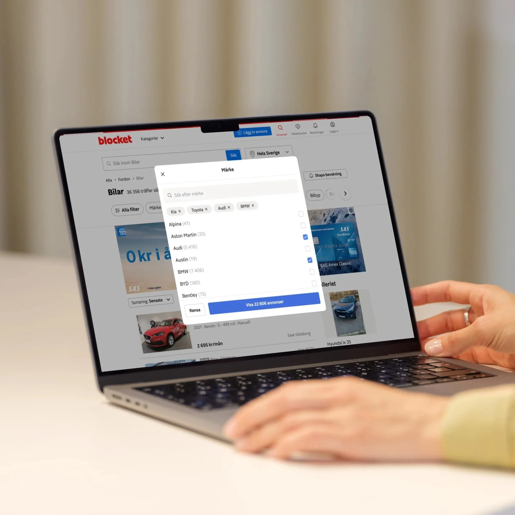 In this project, I contributed to designing and launching an improved car-search experience for Blocket across both app and web. My work included UX and UI design, user research, UX strategy, setting measurable goals, creating new design components, and coordinating across teams and markets to align on a cohesive user experience.