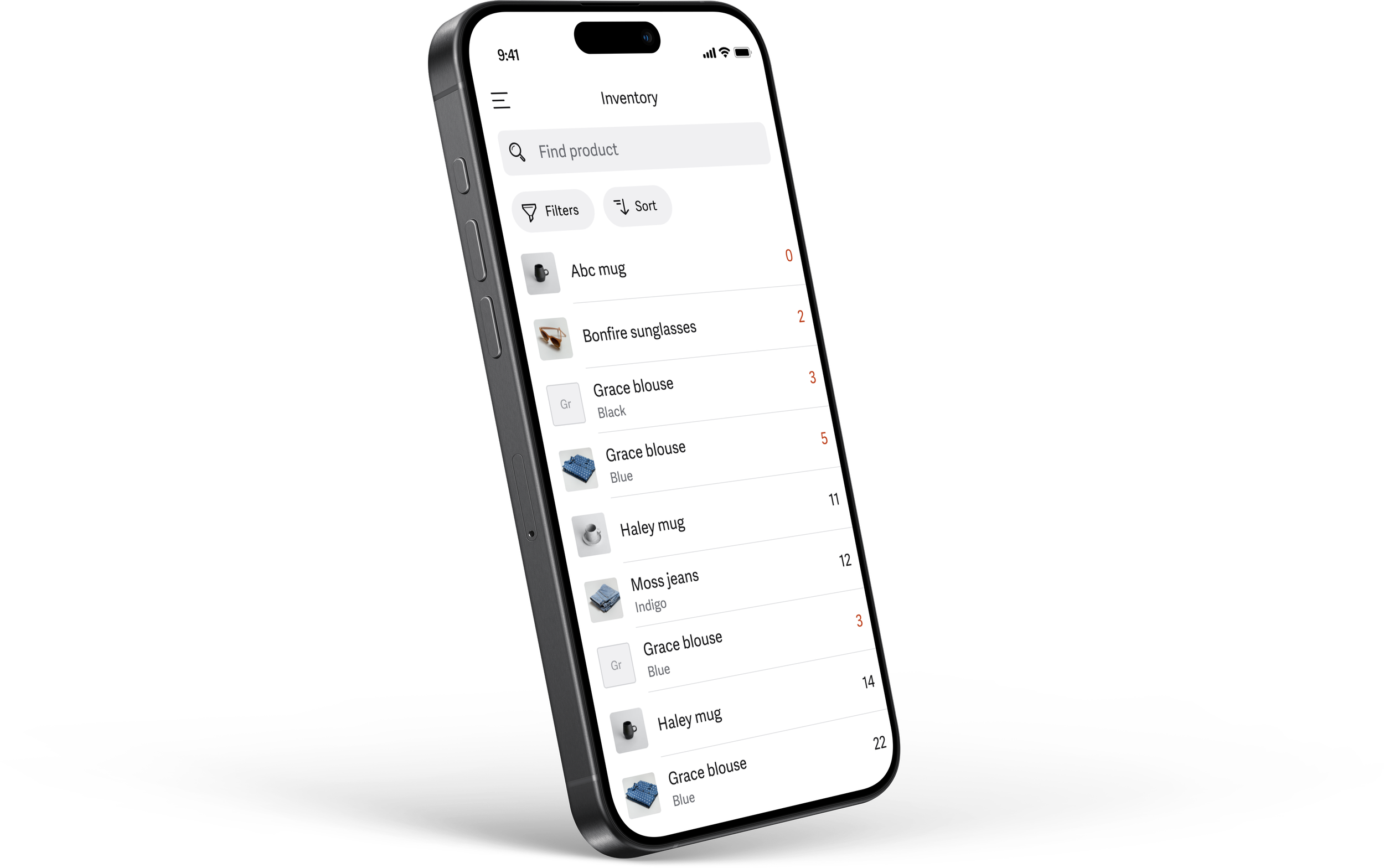 The inventory list in the Zettle POS app helps sellers understand and manage their stock on the go.